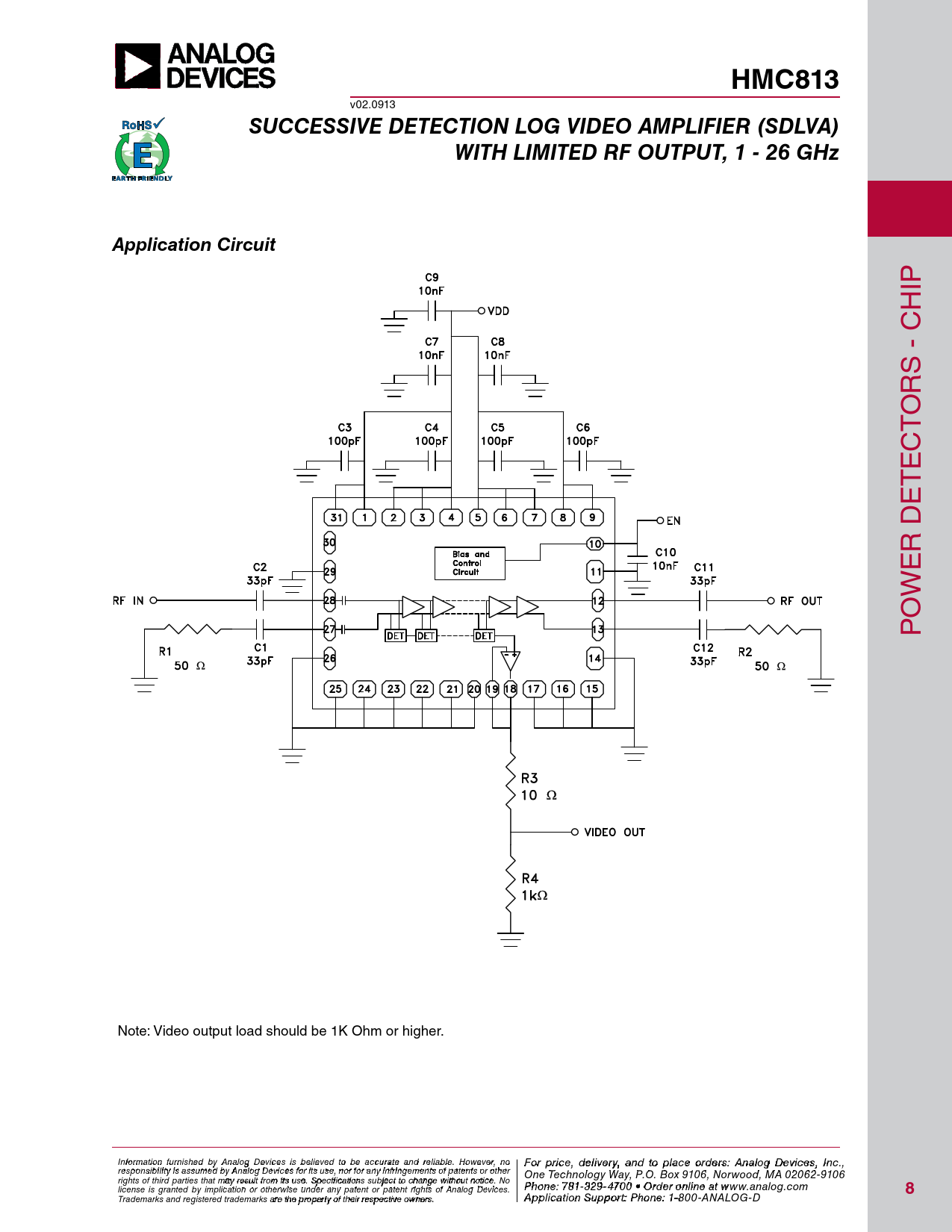 HMC813. SUCCESSIVE DETECTION LOG VIDEO AMPLIFIER (SDLVA). WITH LIMITED RF OUTPUT, 1 - 26 GHz. Application Circuit