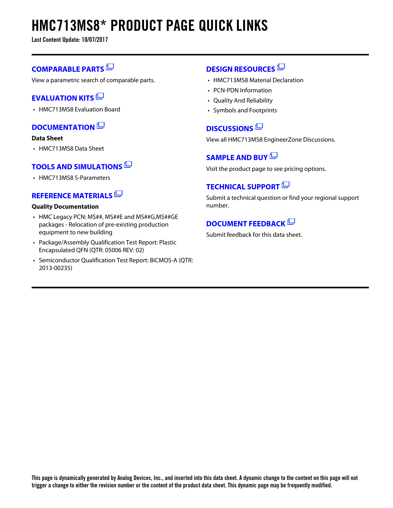 HMC713MS8* PRODUCT PAGE QUICK LINKS Last Content Update: 10/07/2017 COMPARABLE PARTS DESIGN RESOURCES