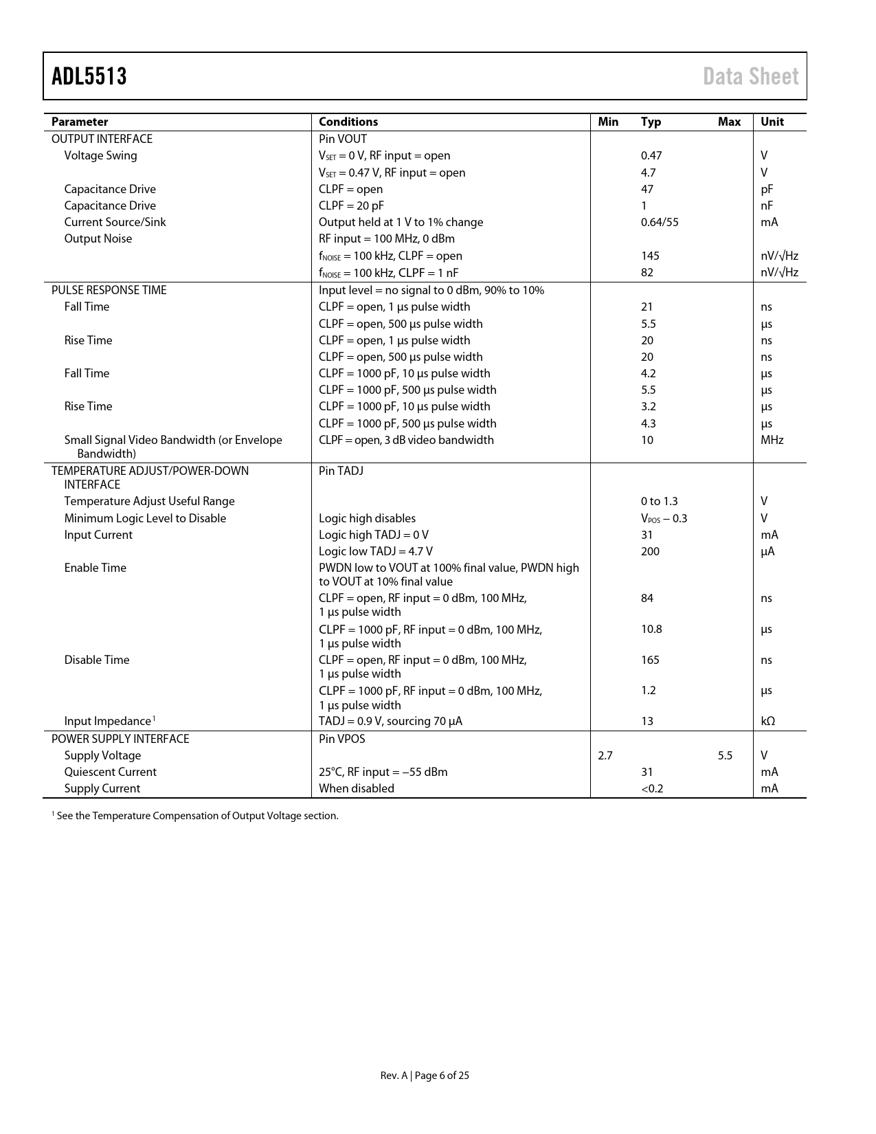 ADL5513 Data Sheet Parameter Conditions Min Typ Max Unit