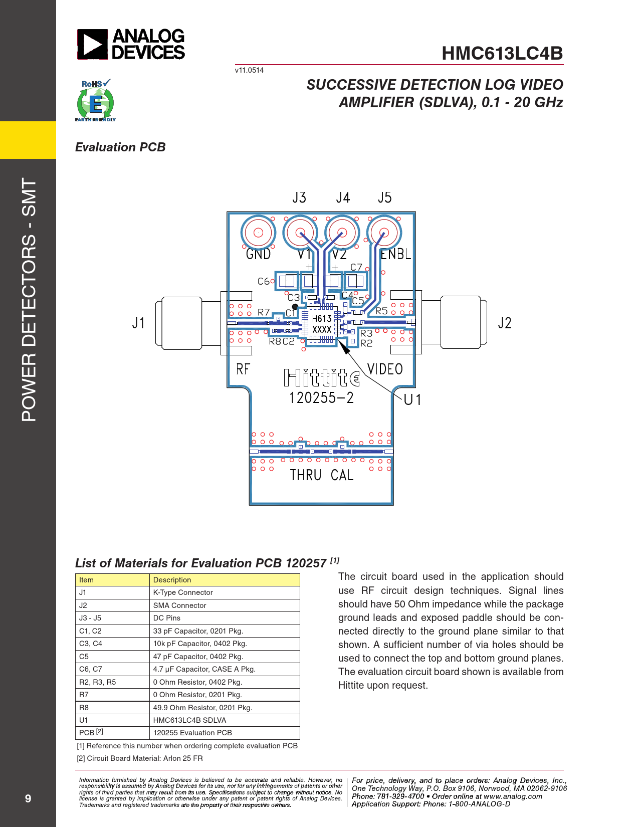 HMC613LC4B. SUCCESSIVE DETECTION LOG VIDEO. AMPLIFIER (SDLVA), 0.1 - 20 GHz. Evaluation PCB