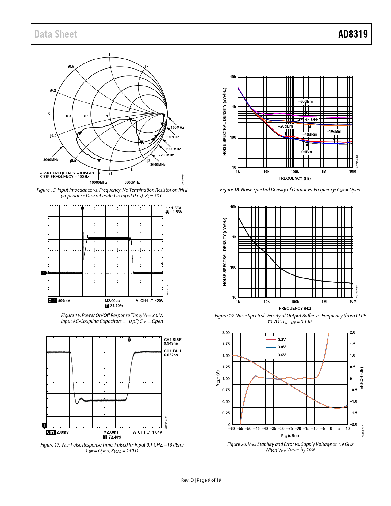 Data Sheet. AD8319. j0.5. 10k. j0.2. z) H / V n (. –60dBm. 0.2. 0.5. NS DE. RF OFF. 100MHz. –20dBm. –10dBm. –j0.2. –40dBm. 900MHz. E 100. P S E. 1900MHz. 0dBm