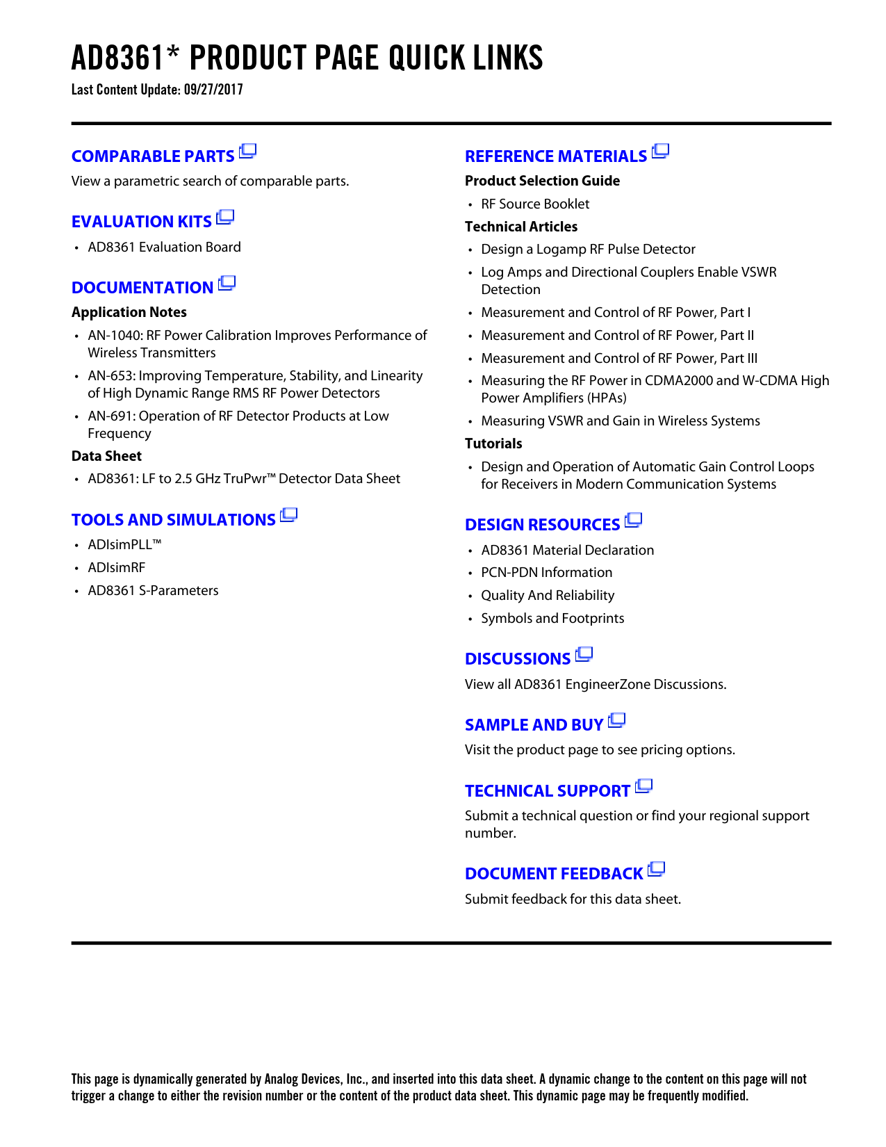 This page is dynamically generated by Analog Devices, Inc., and inserted into this data sheet. A dynamic change to the content on this page will not trigger a change to either the revision number or the content of the product data sheet. This dynamic page may be frequently modified.