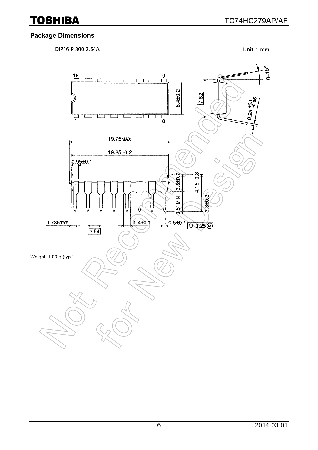 Weight: 1.00 g (typ.) 6 2014-03-01 Document Outline TOSHIBA CMOS Digital Integrated Circuit Silicon Monolithic Features Pin Assignment IEC Logic Symbol Truth Table System Diagram Absolute Maximum Ratings (Note 1) Operating Ranges (Note) Electrical Characteristics DC Characteristics AC Characteristics (CL ( 15 pF, VCC ( 5 V, Ta ( 25°C, input: tr ( tf ( 6 ns) AC Characteristics (CL ( 50 pF, input: tr ( tf ( 6 ns) Package Dimensions Package Dimensions RESTRICTIONS ON PRODUCT USE