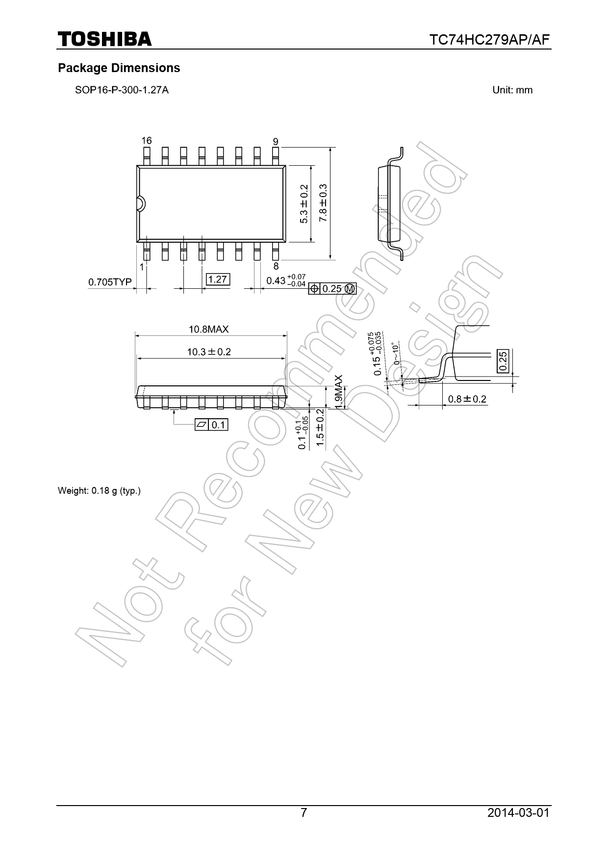 Weight: 0.18 g (typ.) 7 2014-03-01 Document Outline TOSHIBA CMOS Digital Integrated Circuit Silicon Monolithic Features Pin Assignment IEC Logic Symbol Truth Table System Diagram Absolute Maximum Ratings (Note 1) Operating Ranges (Note) Electrical Characteristics DC Characteristics AC Characteristics (CL ( 15 pF, VCC ( 5 V, Ta ( 25°C, input: tr ( tf ( 6 ns) AC Characteristics (CL ( 50 pF, input: tr ( tf ( 6 ns) Package Dimensions Package Dimensions RESTRICTIONS ON PRODUCT USE
