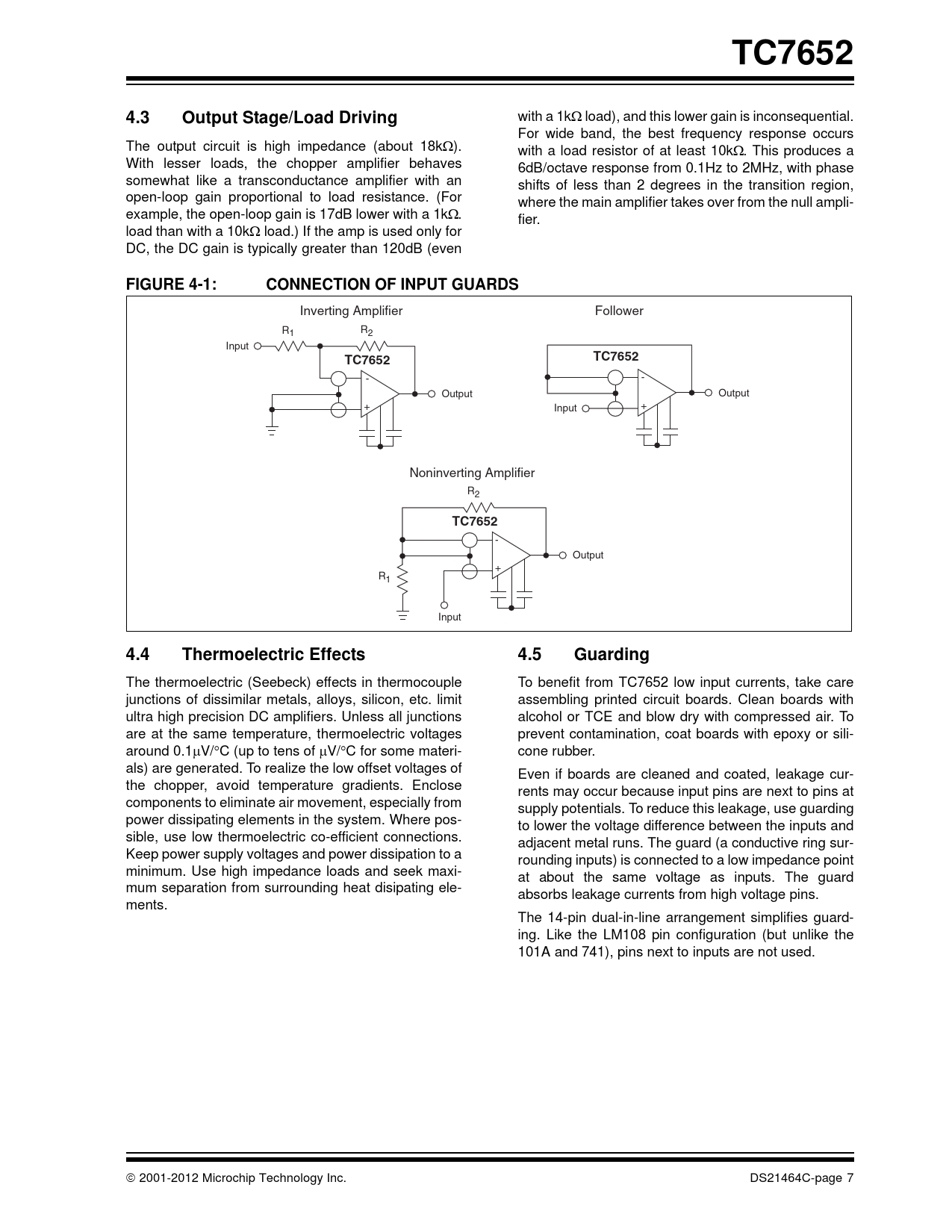 TC7652. 4.3. Output Stage/Load Driving. FIGURE 4-1:. CONNECTION OF INPUT GUARDS. 4.4. Thermoelectric Effects. 4.5. Guarding