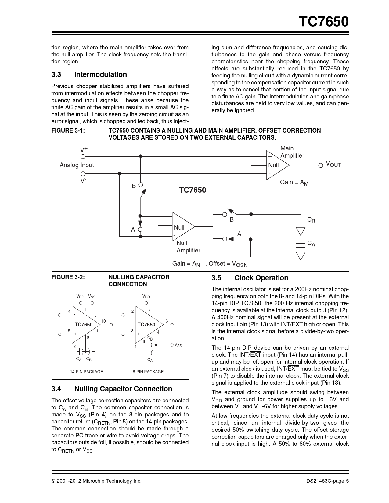 tion region, where the main amplifier takes over from ing sum and difference frequencies, and causing dis- the null amplifier. The clock frequency sets the transi- turbances to the gain and phase versus frequency tion region. characteristics near the chopping frequency. These effects are substantially reduced in the TC7650 by