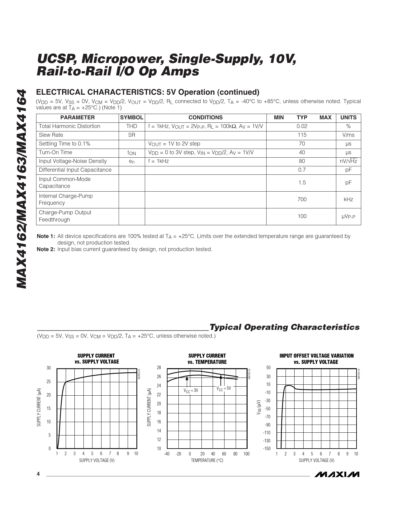 All device specifications are 100% tested at TA = +25°C. Limits over the extended temperature range are guaranteed by design, not production tested.