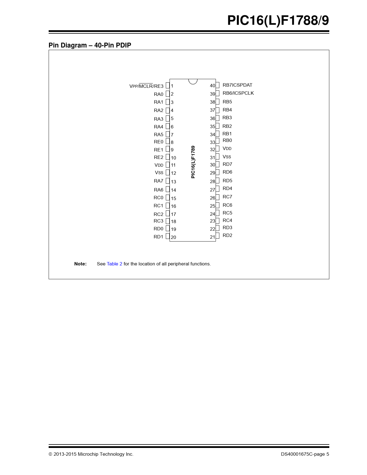 PIC16(L)F1788/9. Pin Diagram – 40-Pin PDIP. 1789. C16(L. Note: