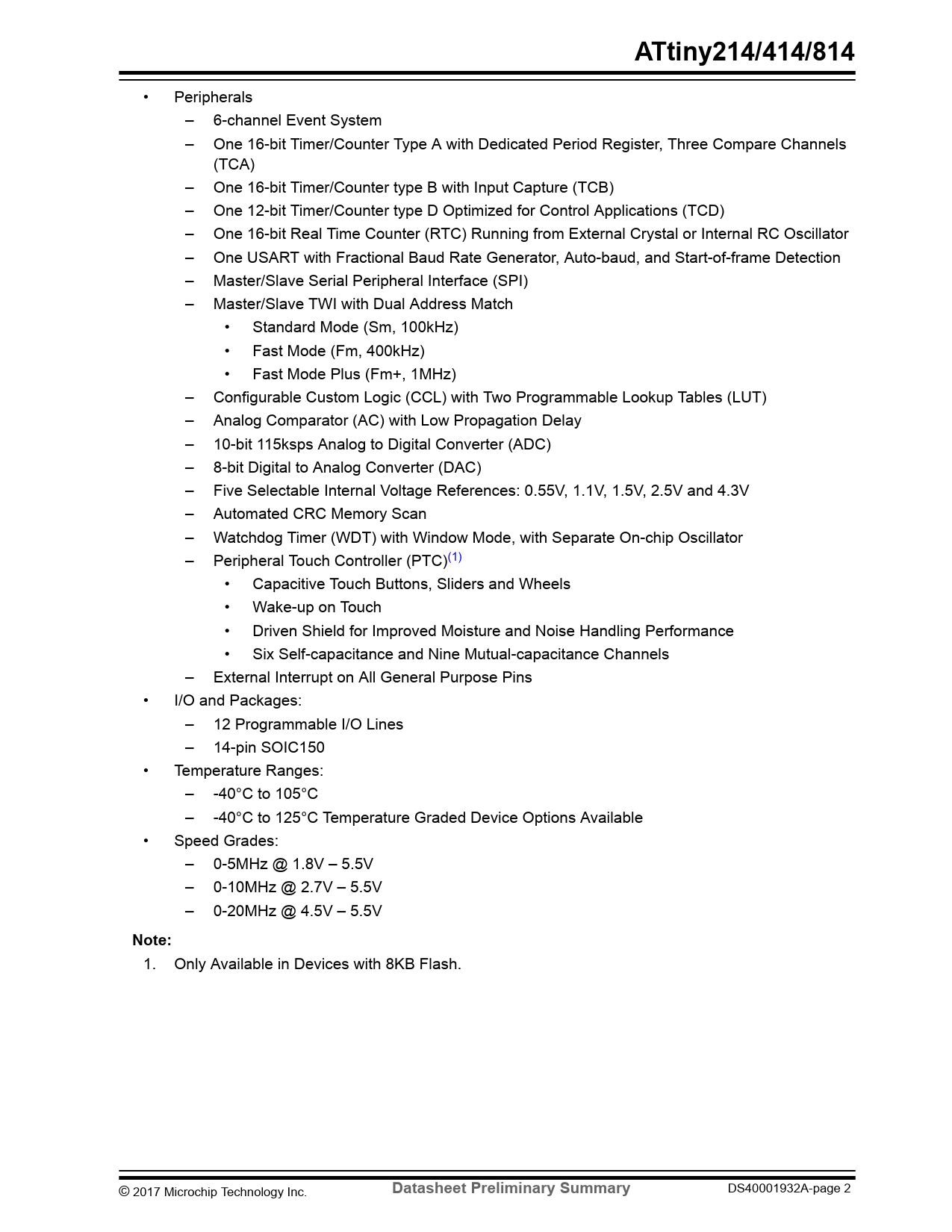 ATtiny214/414/814. Note: . Datasheet Preliminary Summary