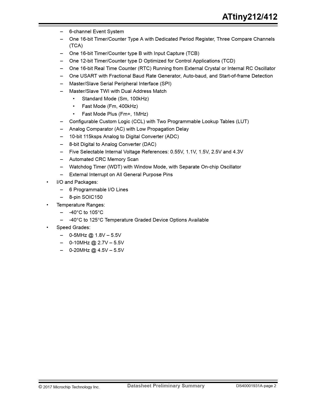 Datasheet ATtiny212, ATTINY412 (Microchip) - 2