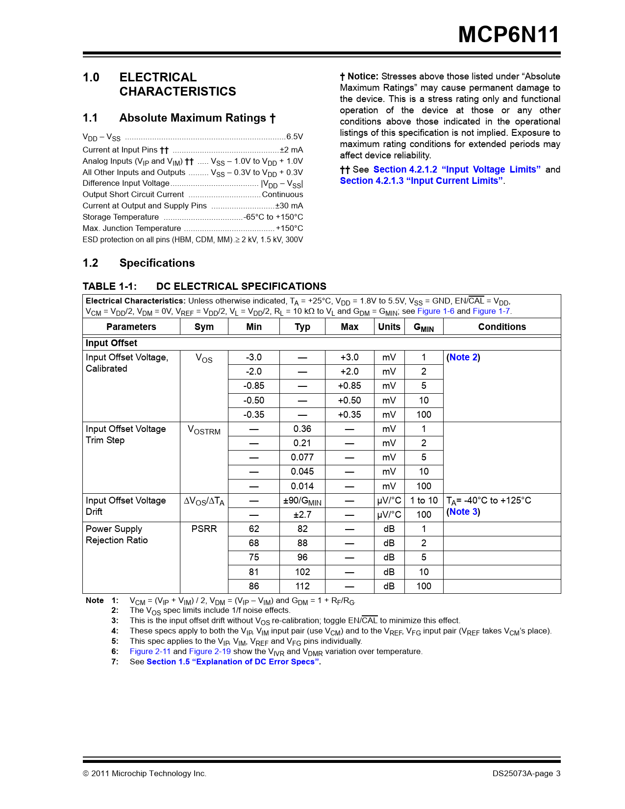 MCP6N11 1.0 ELECTRICAL † Notice: