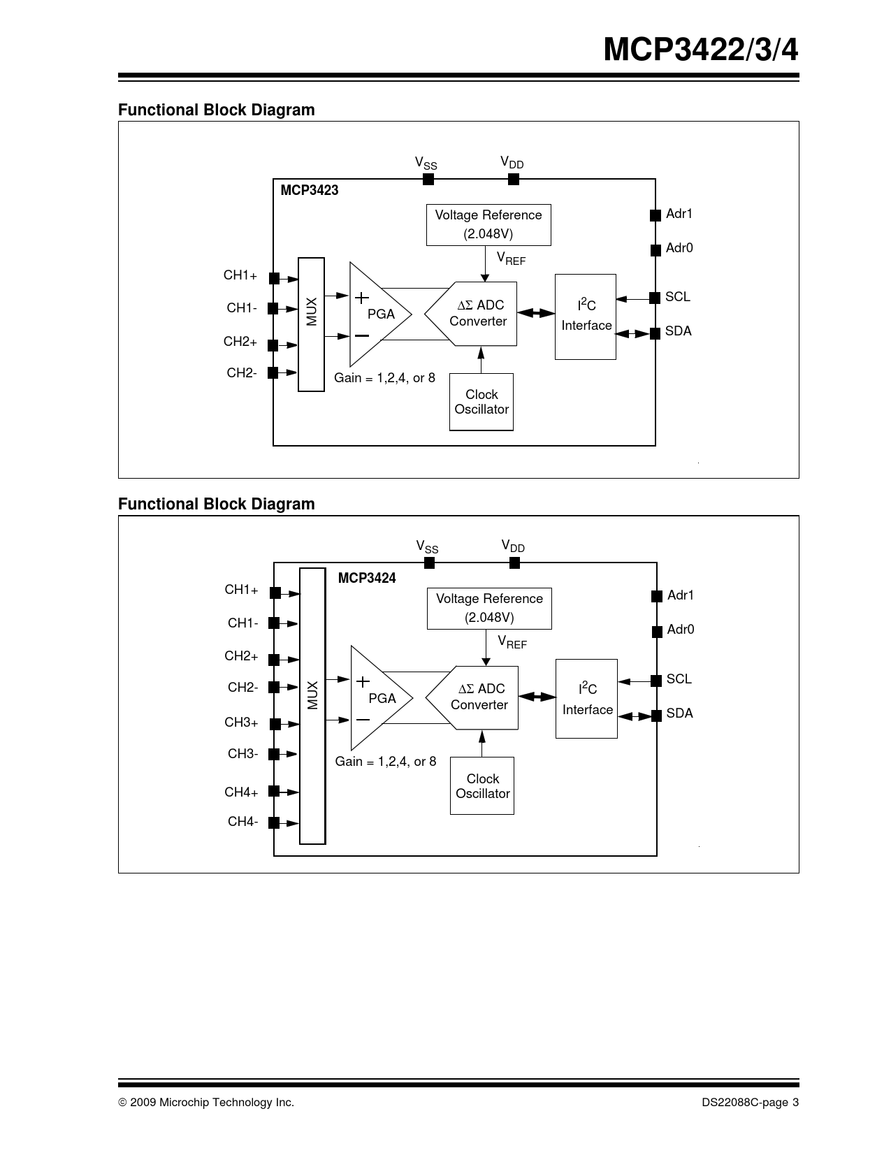 Datasheet MCP3422, MCP3423, MCP3424 (Microchip) - 3