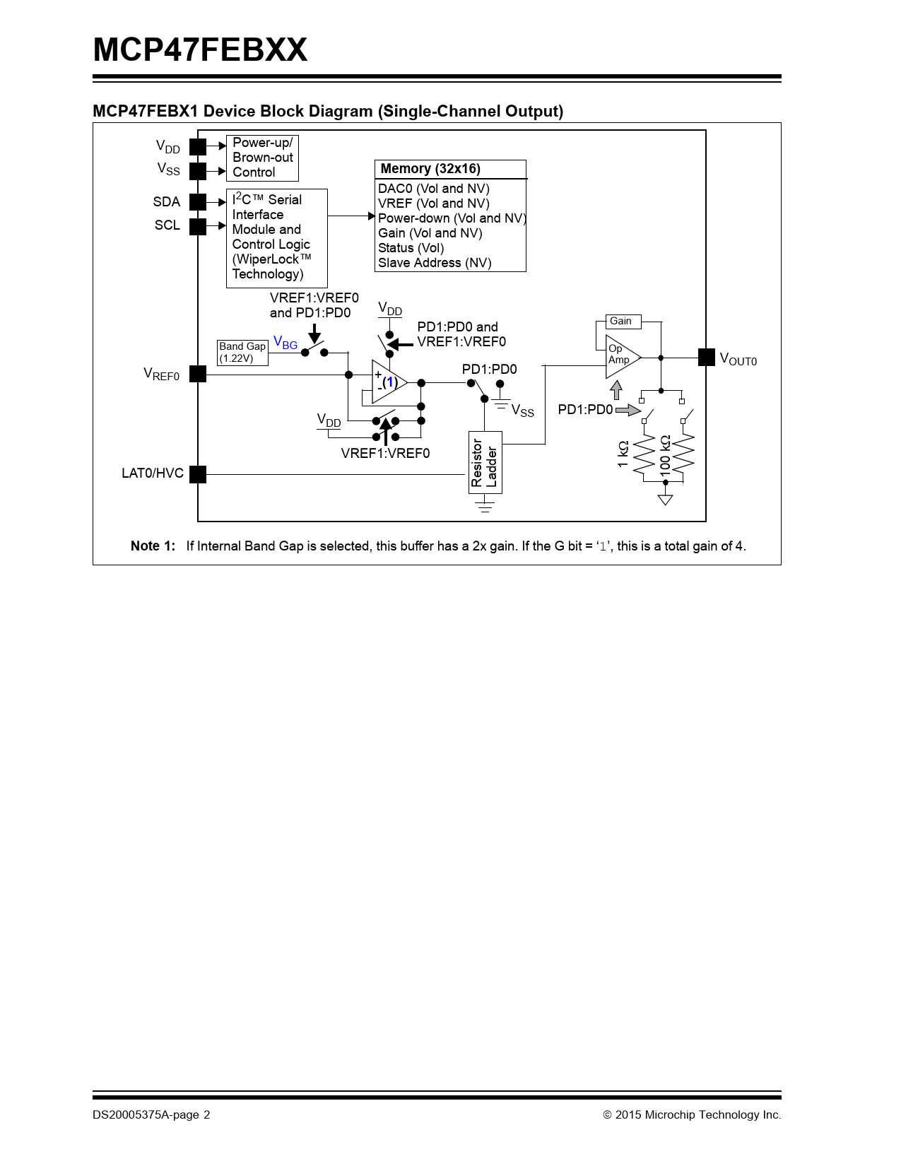 MCP47FEBXX. MCP47FEBX1 Device Block Diagram (Single-Channel Output). Memory (32x16). (1). Note 1: