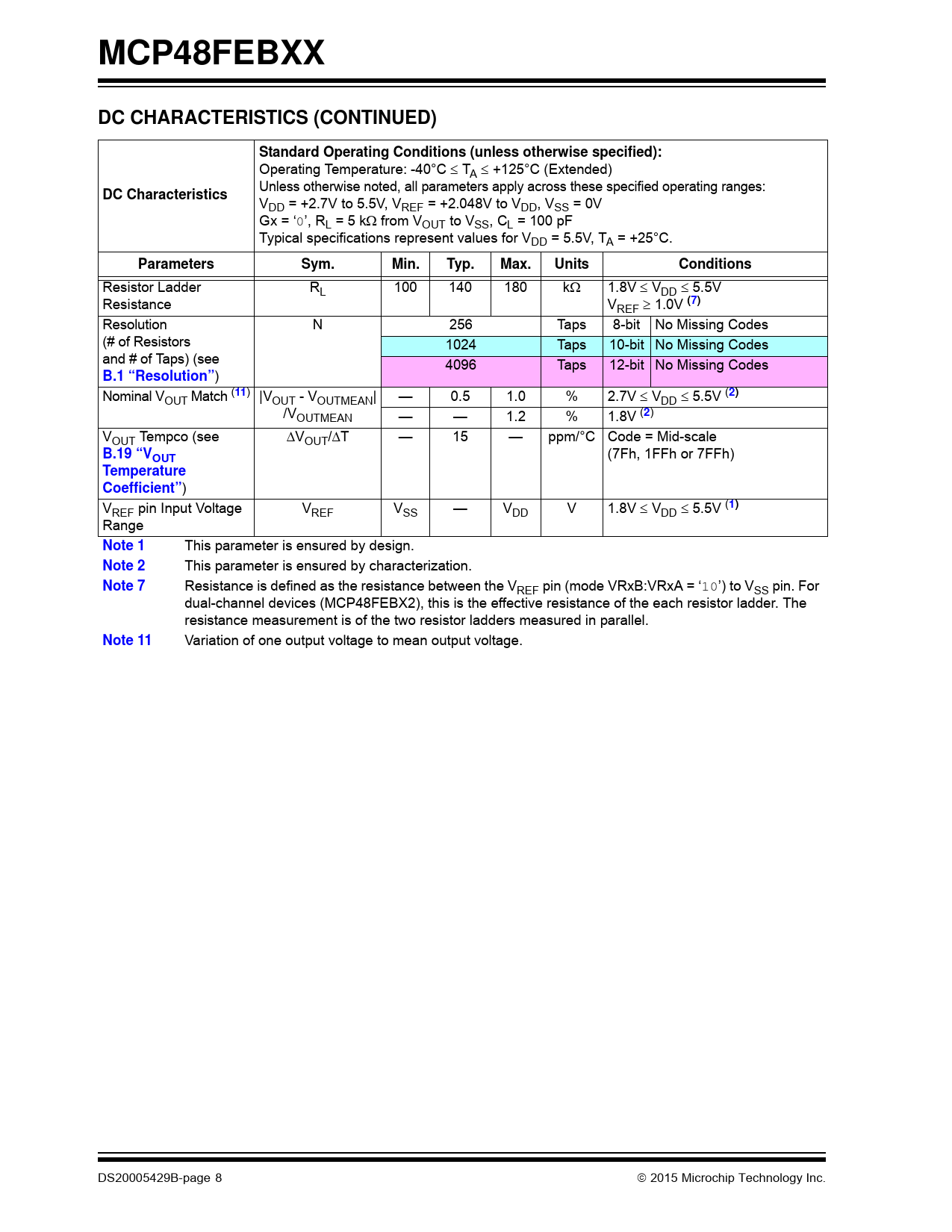 | Páginas / Página | 92 / 8 — MCP48FEBXX. DC CHARACTERISTICS (CONTINUED). Standard Operating Conditions … |