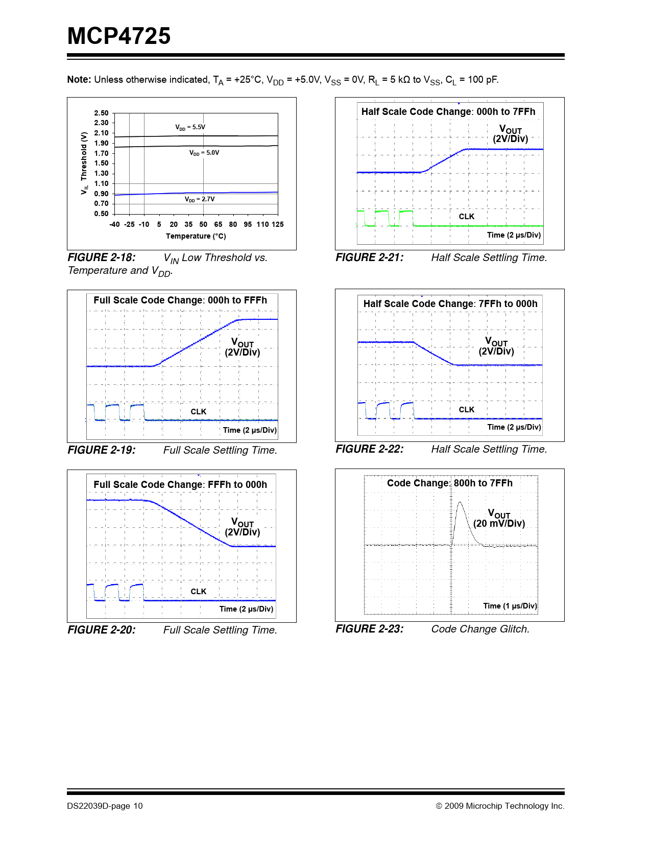 | Páginas / Página | 50 / 10 — MCP4725. Note:. 2.50. Half Scale Code Change. 000h to 7FFh. 2.30. 2.10. … |