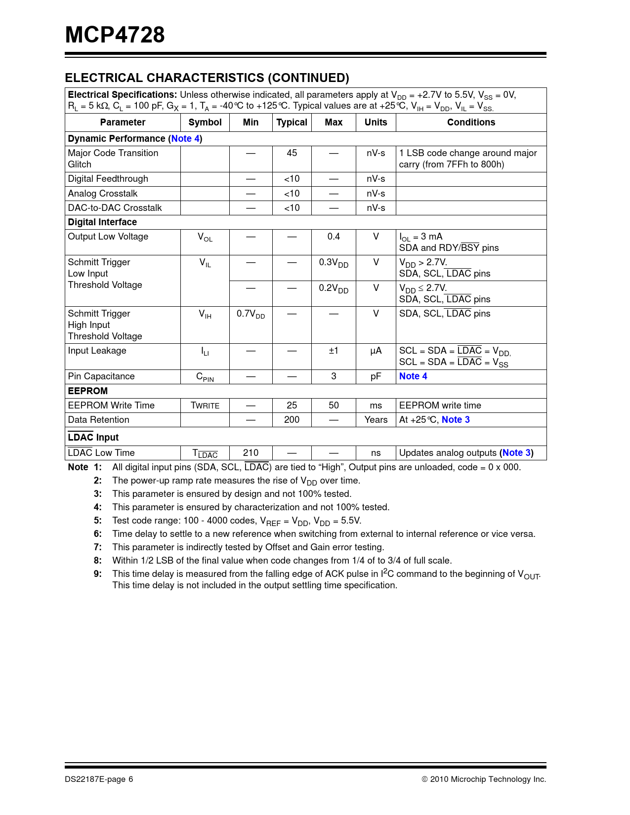 MCP4728 ELECTRICAL CHARACTERISTICS (CONTINUED) Electrical Specifications: