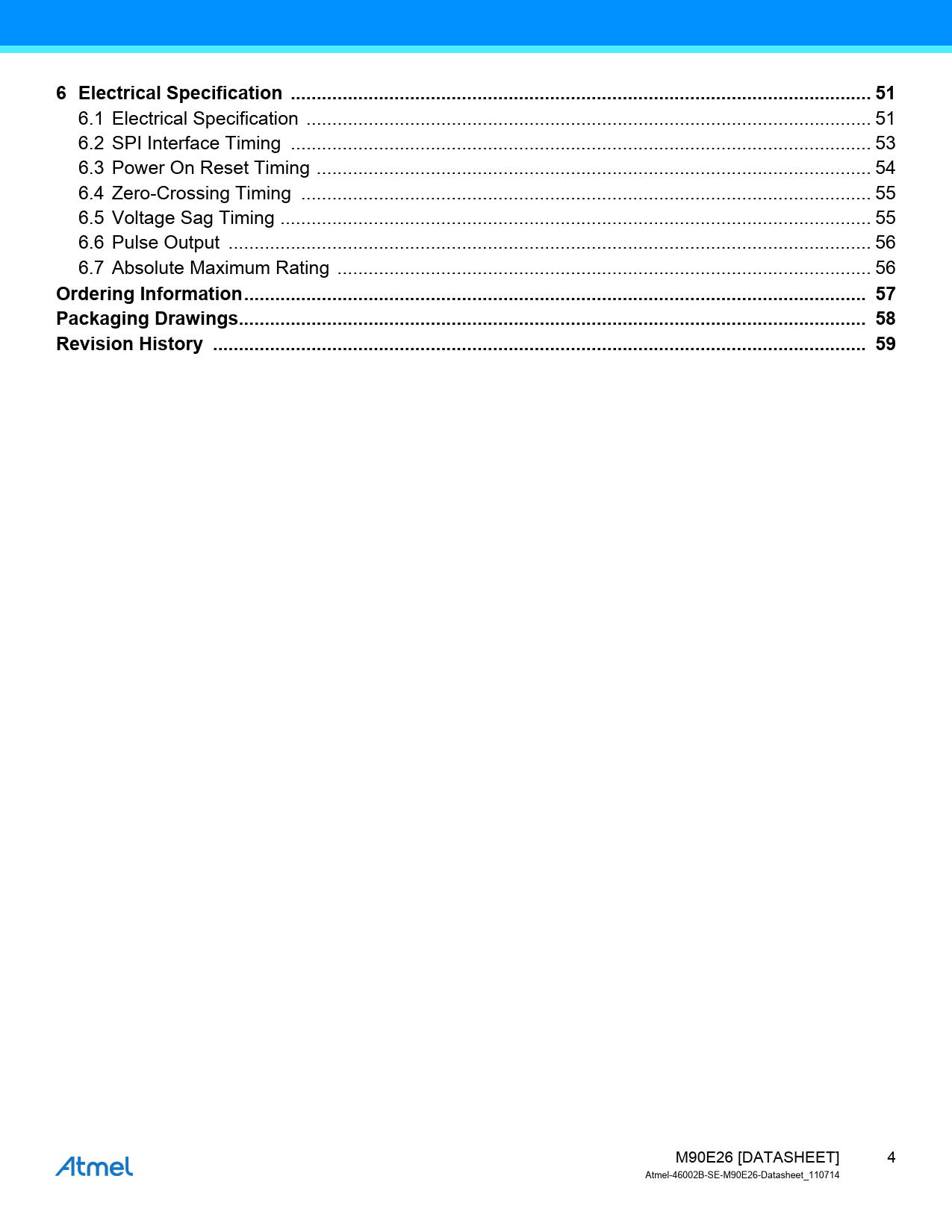 Páginas / Página60 / 4 — 6 Electrical Specification .. 51. Ordering Information.. 57. Packaging …