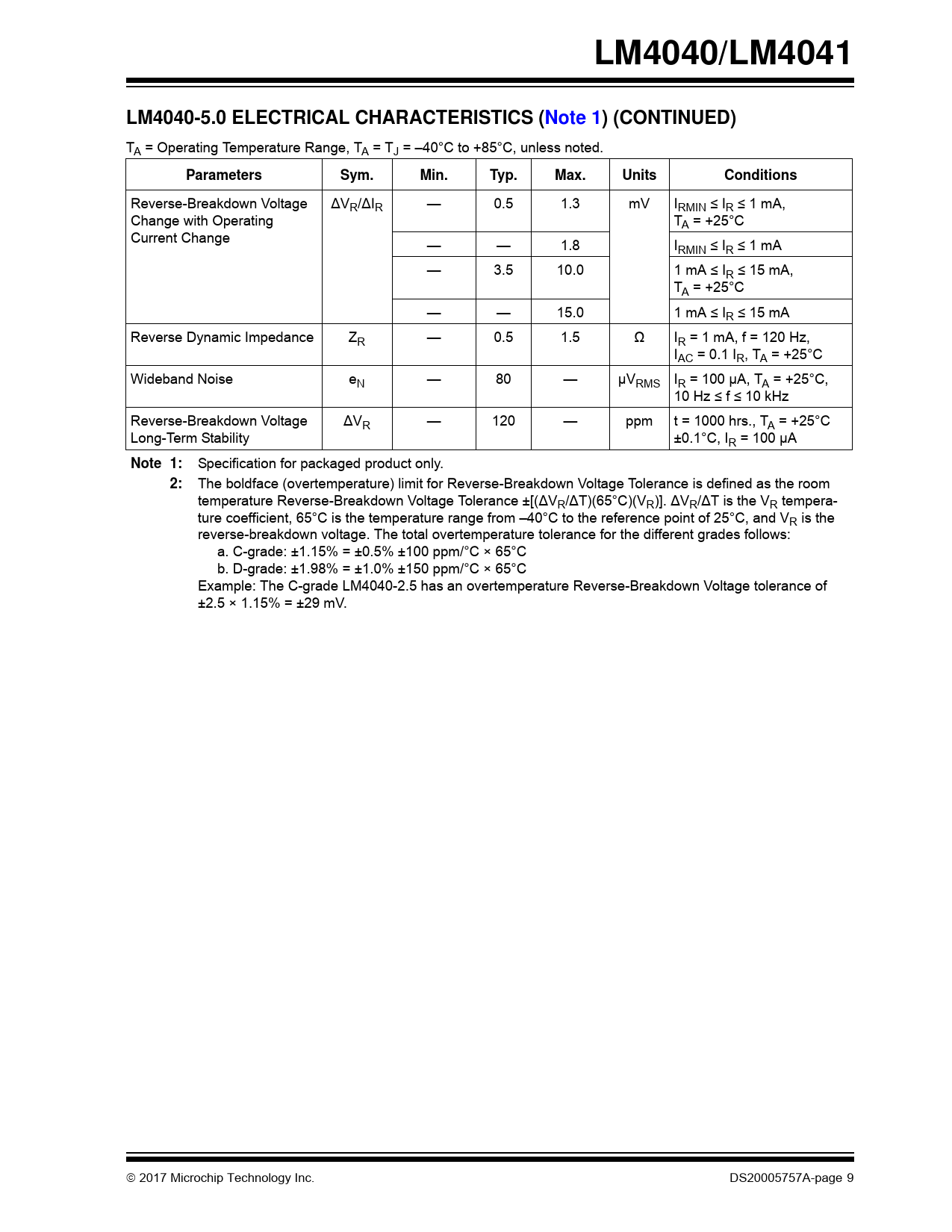 Datasheet LM4040, LM4041 (Microchip) - 9