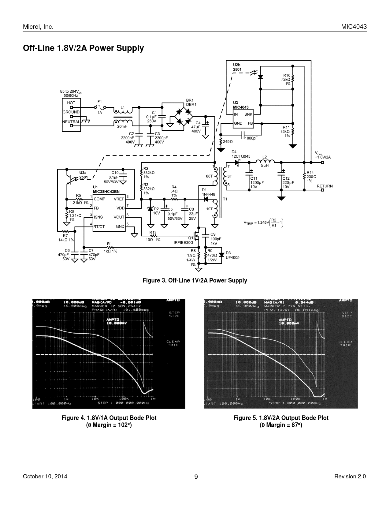Micrel, Inc. MIC4043 Off-Line 1.8V/2A Power Supply Figure 3. Off-Line 1V/2A Power Supply Figure 4. 1.8V/1A Output Bode Plot