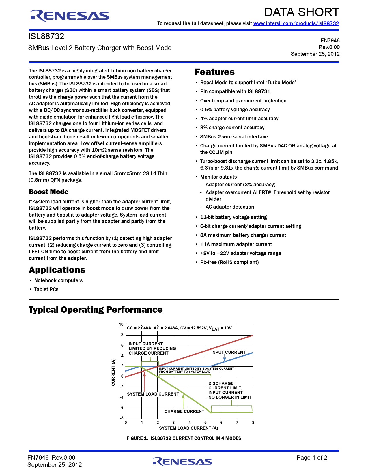 FIGURE 1. ISL88732 CURRENT CONTROL IN 4 MODES FN7946 Rev.0.00 Page 1 of 2 September 25, 2012