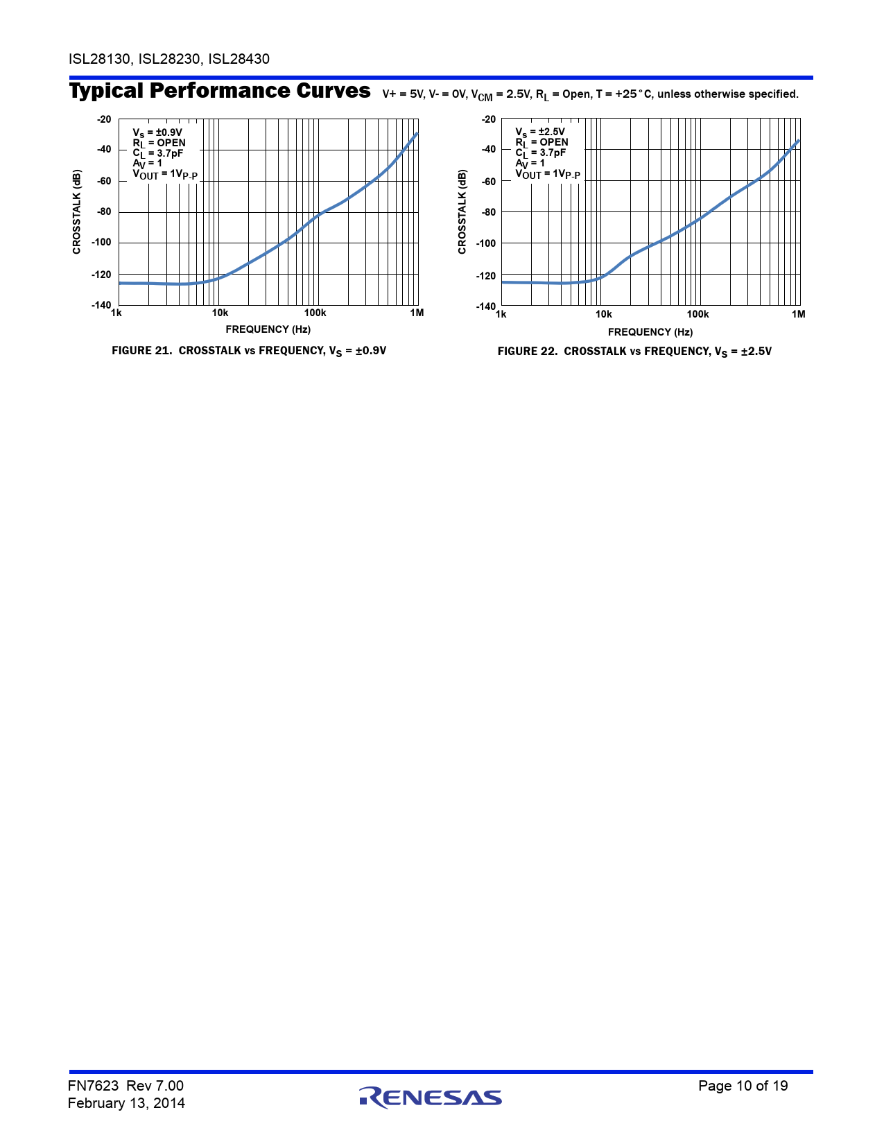 FIGURE 21. CROSSTALK vs FREQUENCY, VS = ±0.9V FIGURE 22. CROSSTALK vs FREQUENCY, VS = ±2.5V FN7623 Rev 7.00 Page 10 of 19 February 13, 2014