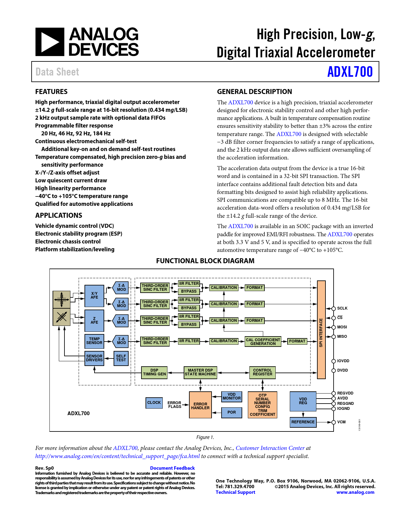 High Precision, Low-g. Digital Triaxial Accelerometer. Data Sheet. ADXL700. FEATURES. GENERAL DESCRIPTION