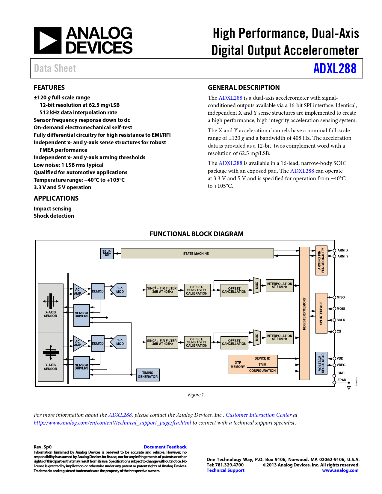 001 1204- 1 Figure 1. For more information about the ADXL288, please contact the Analog Devices, Inc., Customer Interaction Center at http://www.analog.com/en/content/technical_support_page/fca.html to connect with a technical support specialist.