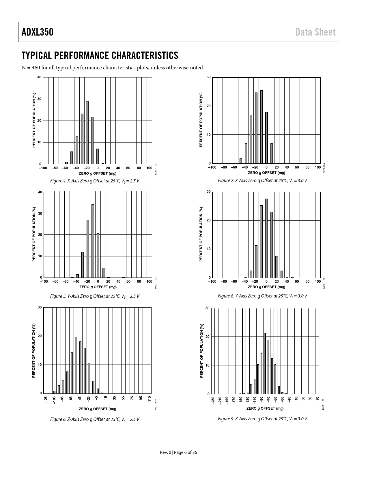 ADXL350. Data Sheet. TYPICAL PERFORMANCE CHARACTERISTICS. ( 30. TION. OP 20. T OF P. R 10. –100. –80. –60. –40. –20. 100. ZERO g. OFFSET (mg. PER. –85. –65