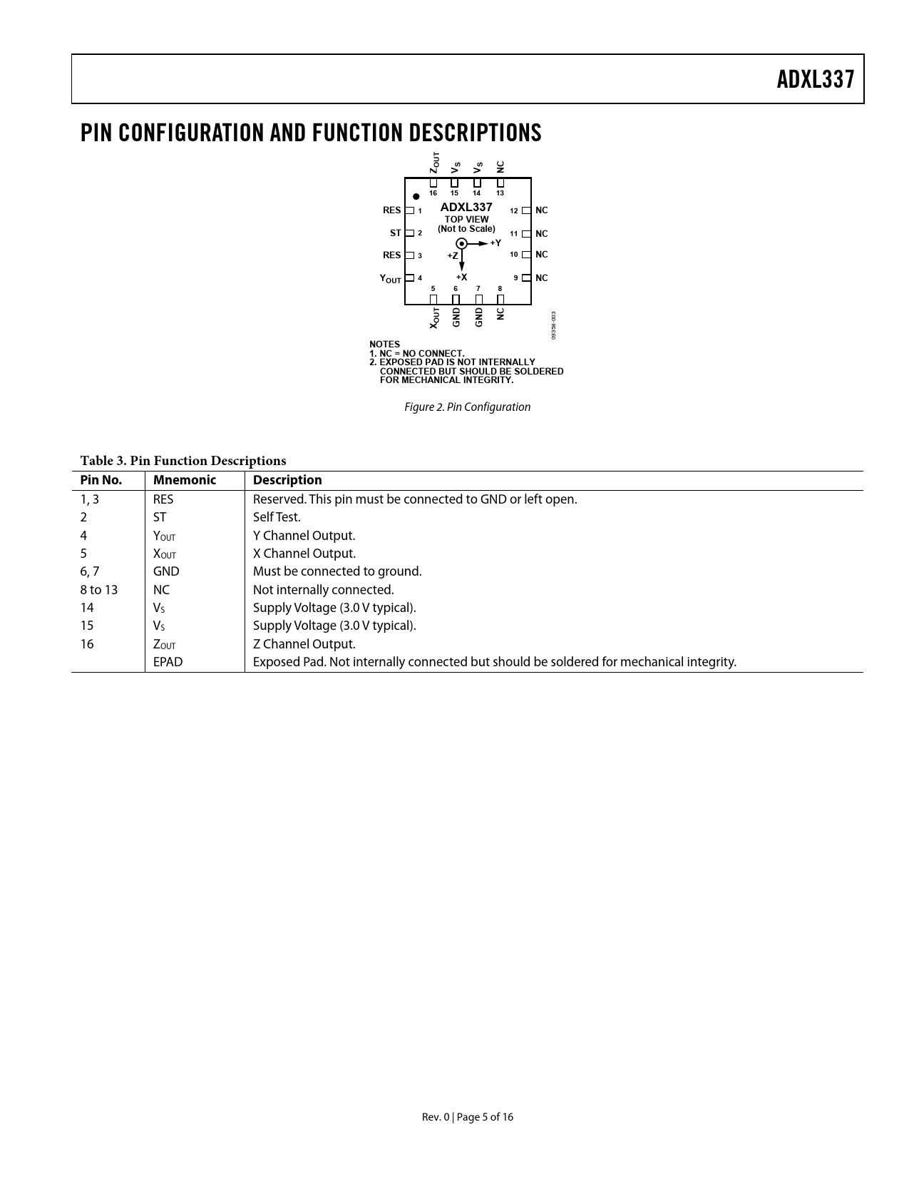 Z OU RES ADXL337 TOP VIEW (Not to Scale) YOUT NOTES 1 NC = NO CONNECT 2 EXPOSED PAD IS NOT INTERNALLY
