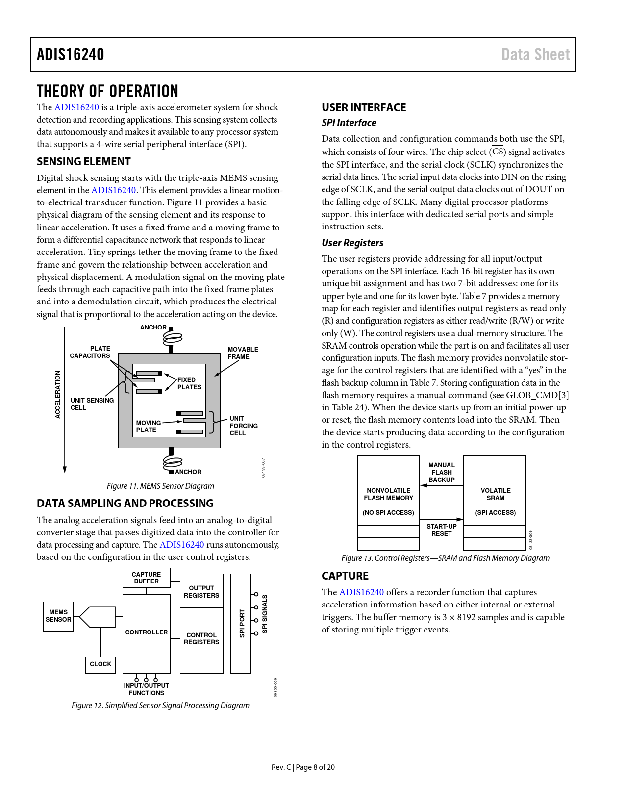 ADIS16240. Data Sheet. THEORY OF OPERATION. USER INTERFACE. SPI Interface. SENSING ELEMENT. User Registers. ANCHOR. PLATE. MOVABLE