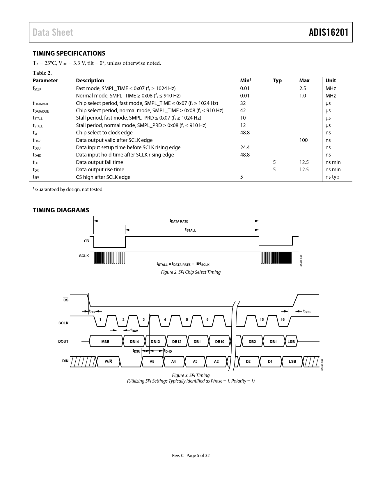 Data Sheet ADIS16201 TIMING SPECIFICATIONS