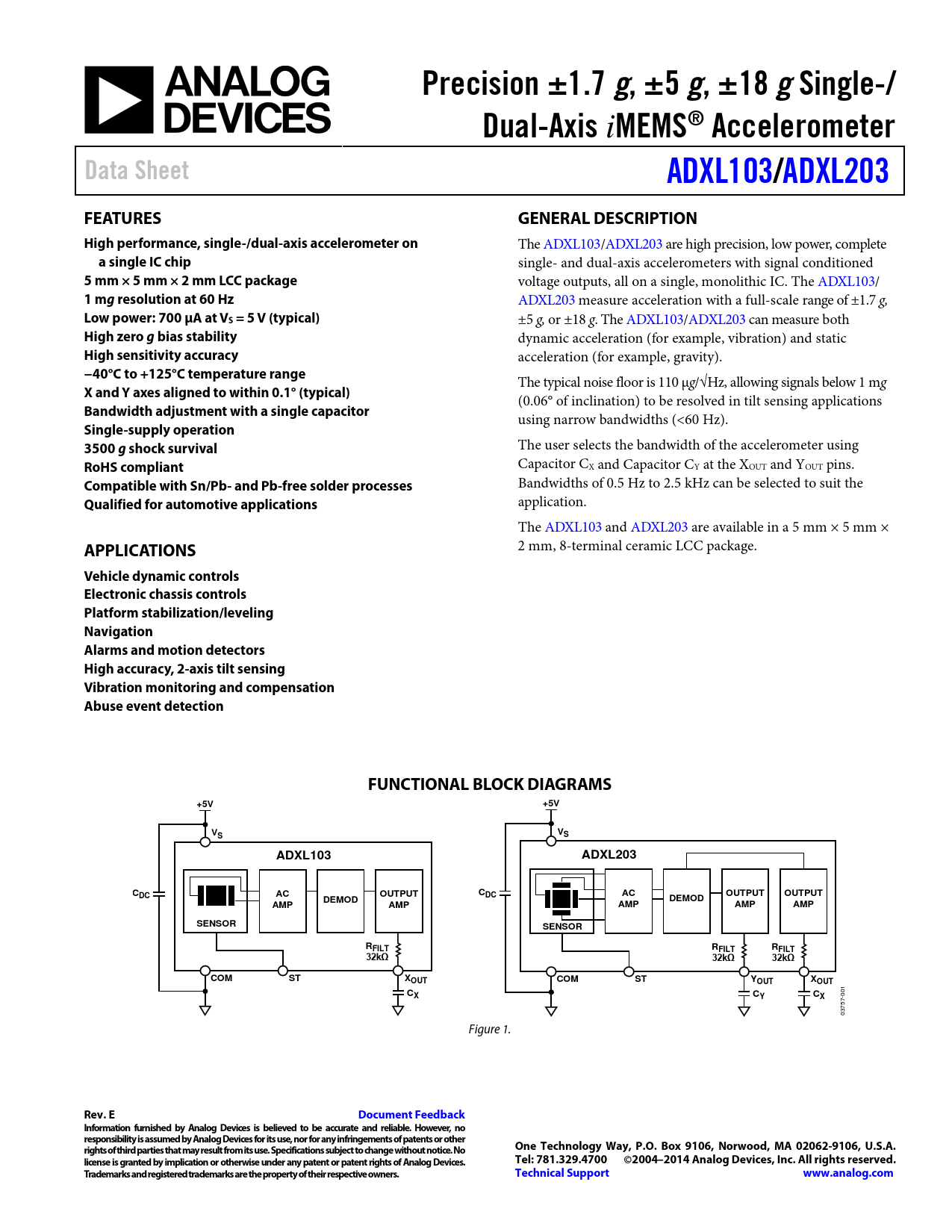 The ADXL103/ADXL203 are high precision, low power, complete