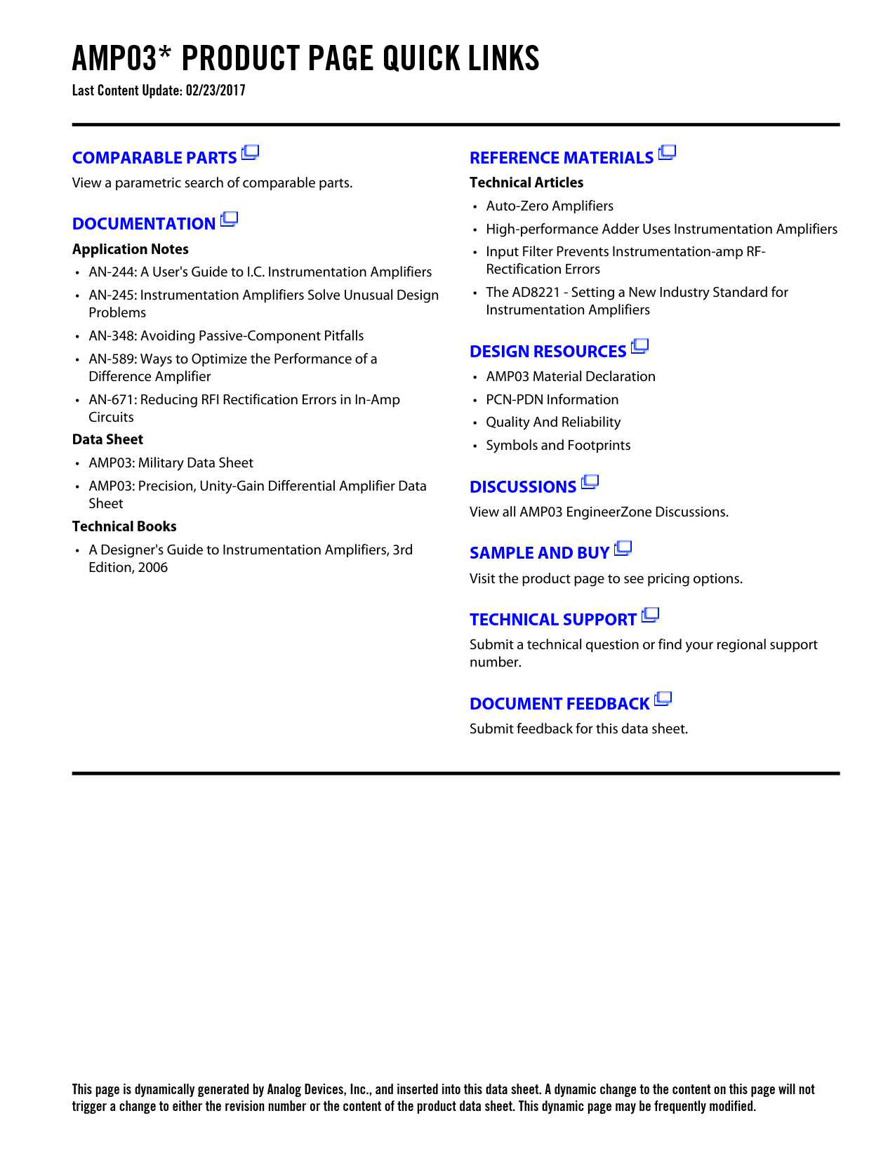 AMP03* PRODUCT PAGE QUICK LINKS Last Content Update: 02/23/2017 COMPARABLE PARTS REFERENCE MATERIALS Technical Articles