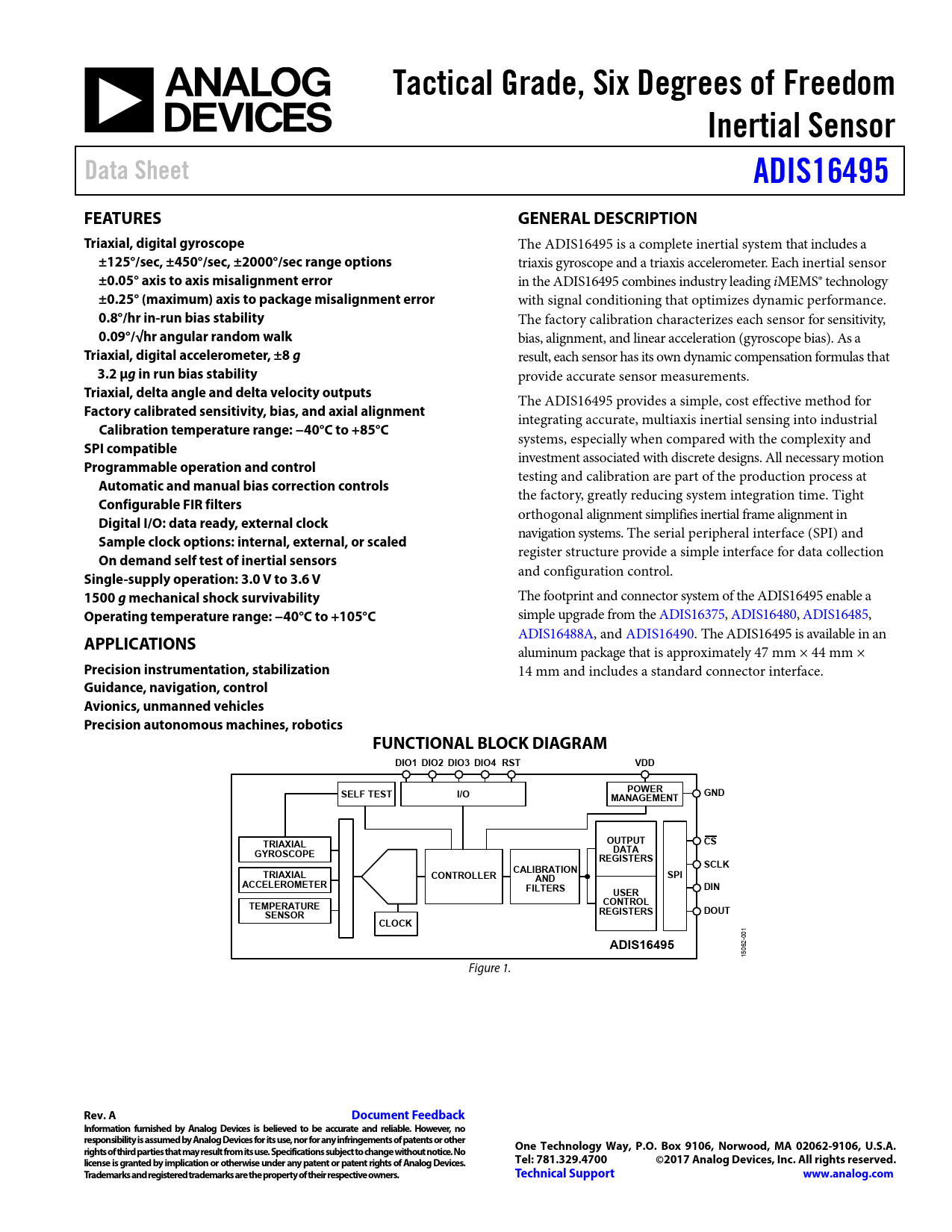 Tactical Grade, Six Degrees of Freedom Inertial Sensor Data Sheet ADIS16495 FEATURES GENERAL DESCRIPTION Triaxial, digital gyroscope