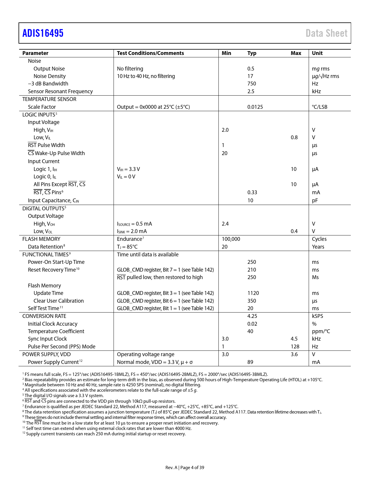 ADIS16495 Data Sheet Parameter Test Conditions/Comments Min Typ Max Unit