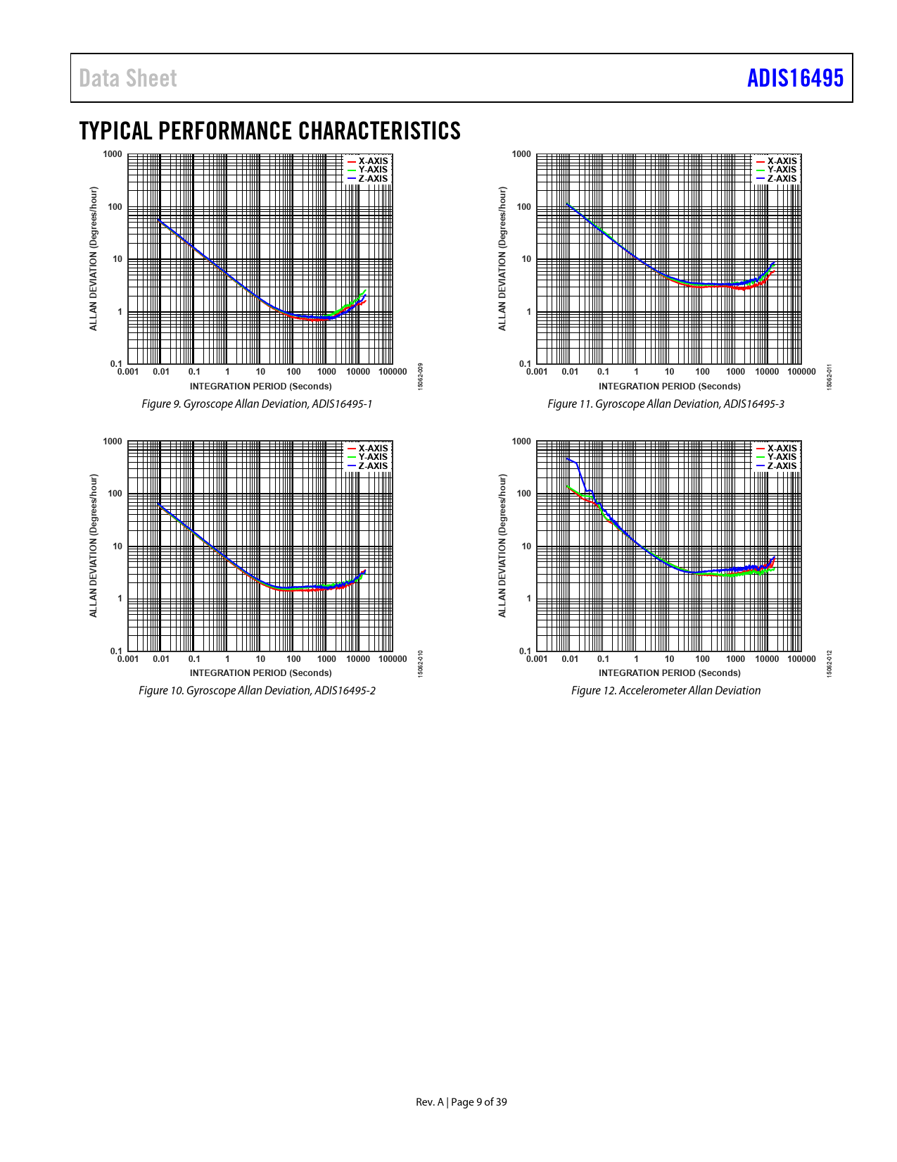 Data Sheet. ADIS16495. TYPICAL PERFORMANCE CHARACTERISTICS. 1000. X-AXIS. Y-AXIS. Z-AXIS. hour) 100. rees/. Deg. N (. VIATIO. LAN DE. 0.1. 0.001