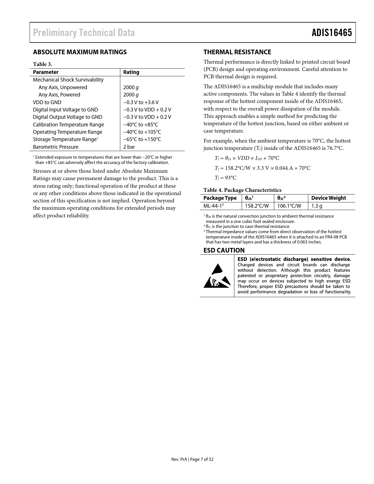 Preliminary Technical Data. ADIS16465. ABSOLUTE MAXIMUM RATINGS. THERMAL RESISTANCE. Table 3. Parameter Rating