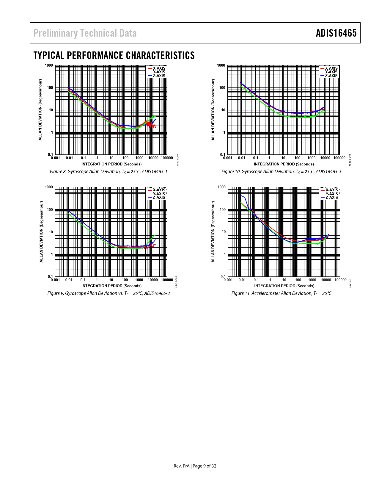 Preliminary Technical Data. ADIS16465. TYPICAL PERFORMANCE CHARACTERISTICS. 1000. X-AXIS. Y-AXIS. Z-AXIS. our. 100. rees/h. AN DE. 0.1. 0.001