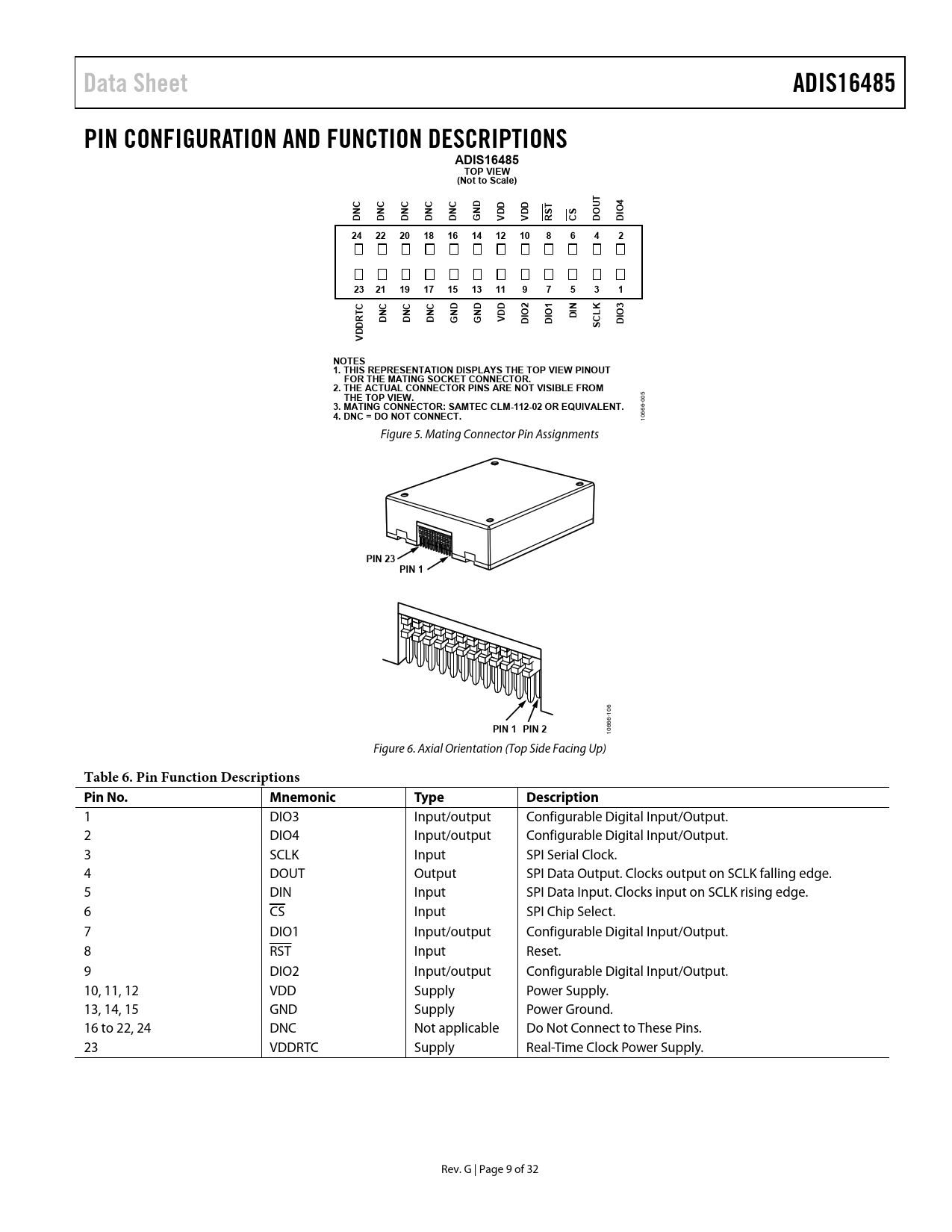 Data Sheet ADIS16485 PIN CONFIGURATION AND FUNCTION DESCRIPTIONS TOP VIEW (Not to Scale) DNC RST DRT D V NOTES