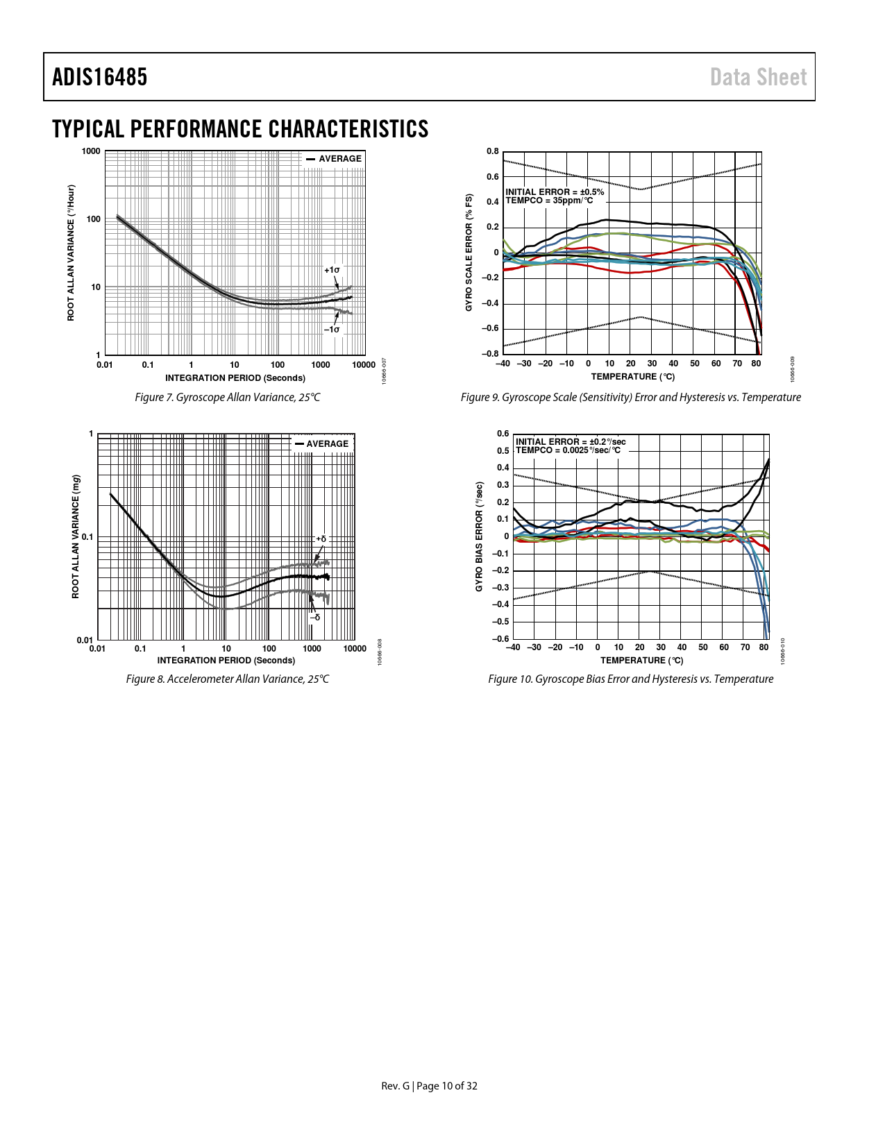 ADIS16485. Data Sheet. TYPICAL PERFORMANCE CHARACTERISTICS. 1000. 0.8. AVERAGE. 0.6. INITIAL ERROR = ±0.5%. 0.4. TEMPCO = 35ppm/°C. (°/H. 100