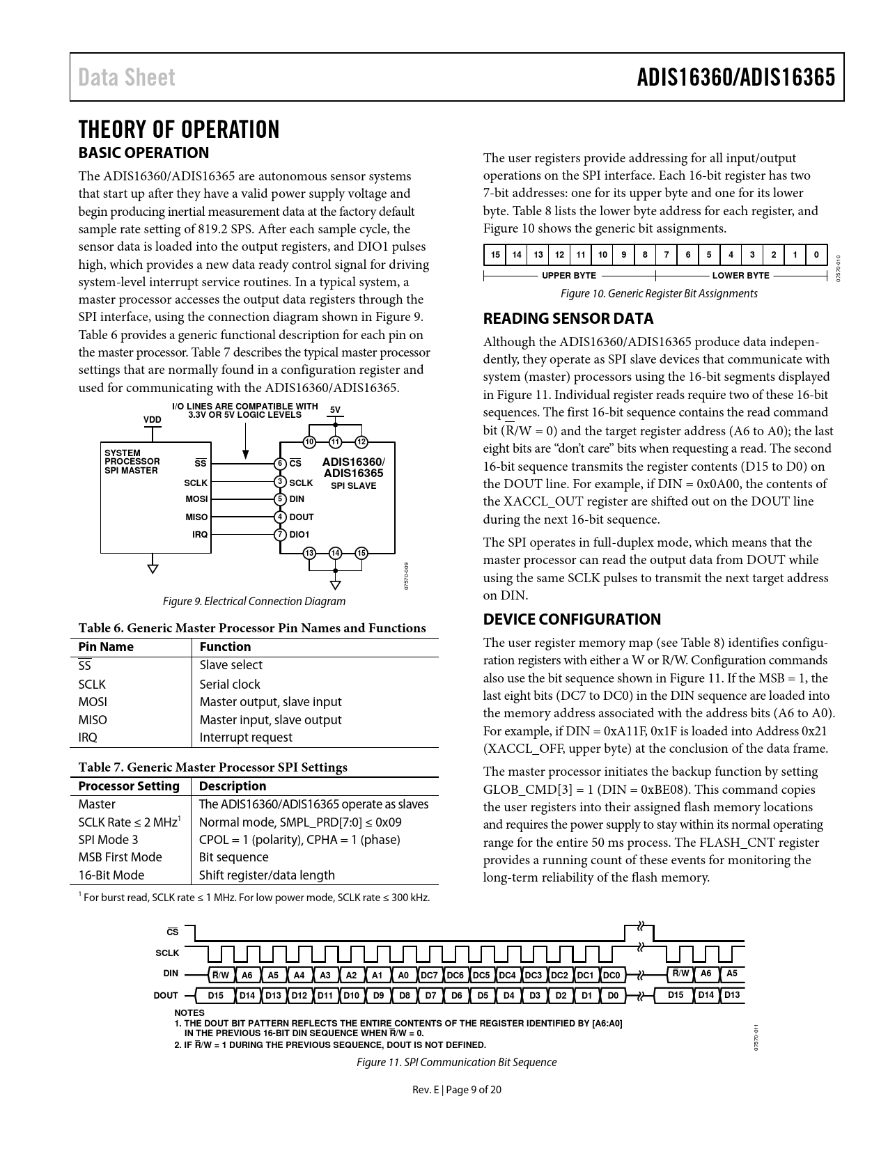 Data Sheet ADIS16360/ADIS16365 THEORY OF OPERATION BASIC OPERATION UPPER BYTE LOWER BYTE READING SENSOR DATA