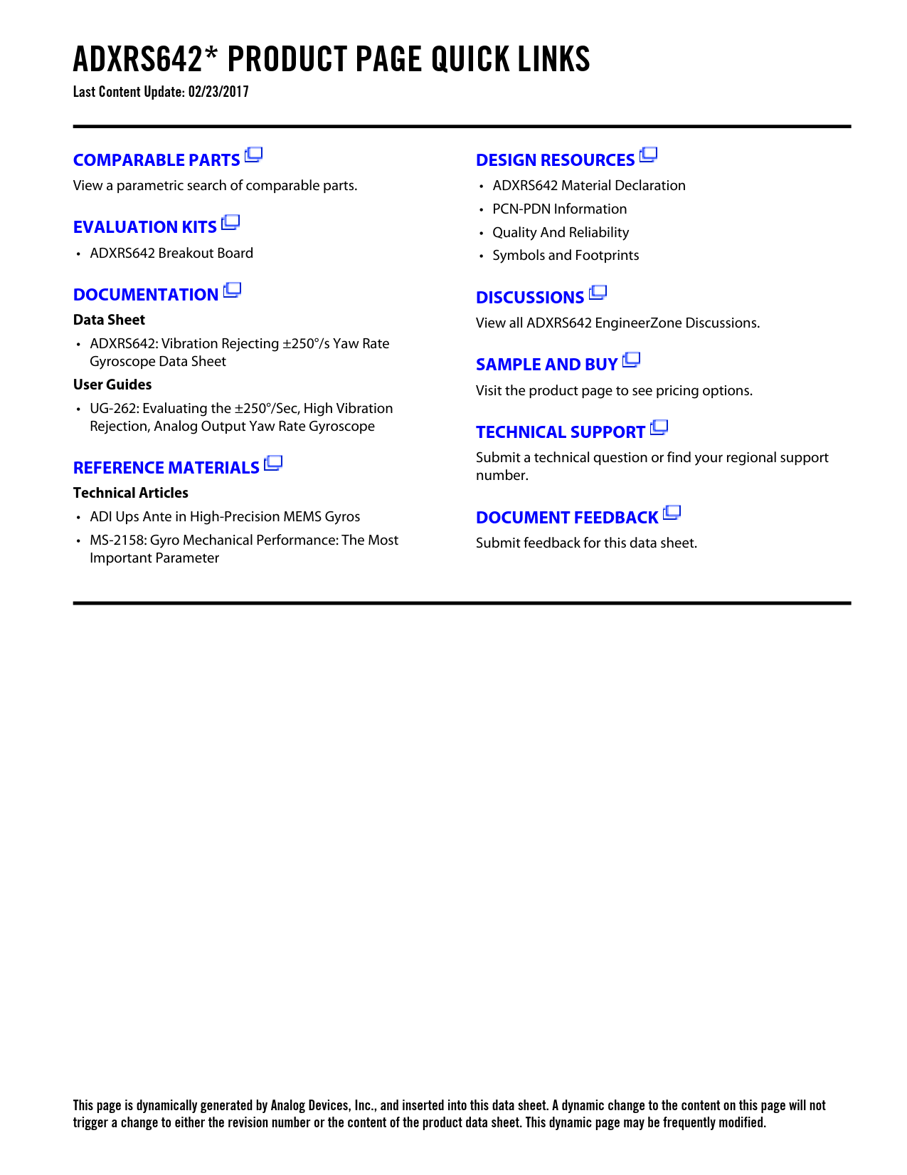 ADXRS642* PRODUCT PAGE QUICK LINKS Last Content Update: 02/23/2017 COMPARABLE PARTS DESIGN RESOURCES