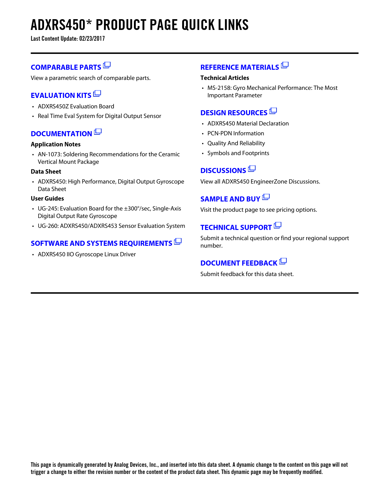 ADXRS450* PRODUCT PAGE QUICK LINKS Last Content Update: 02/23/2017 COMPARABLE PARTS REFERENCE MATERIALS