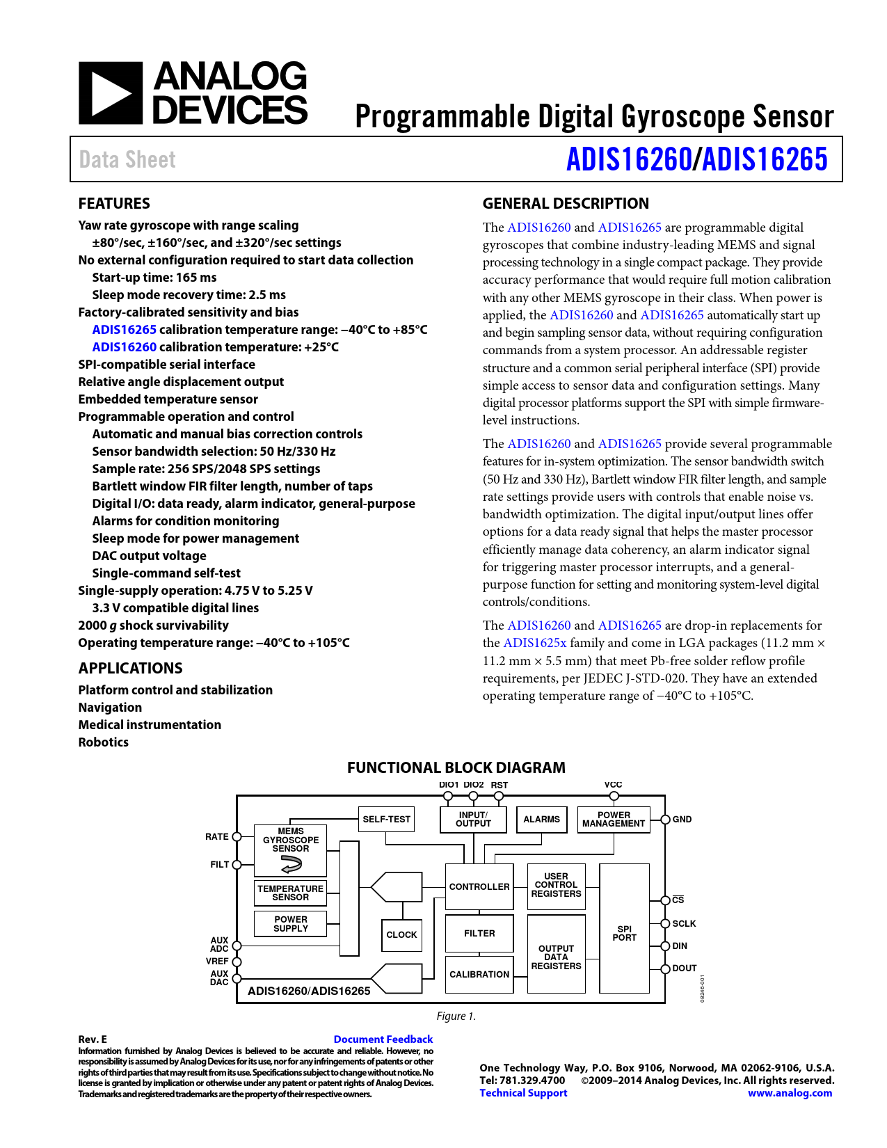 Programmable Digital Gyroscope Sensor. Data Sheet. ADIS16260/. ADIS16265. FEATURES. GENERAL DESCRIPTION