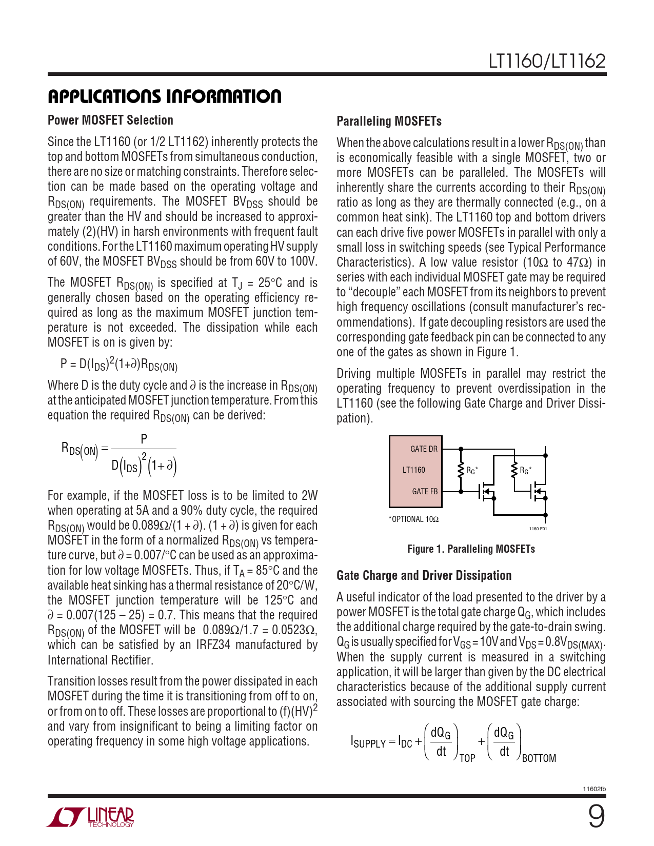 U U W U APPLICATIONS INFORMATION Power MOSFET Selection Paralleling MOSFETs