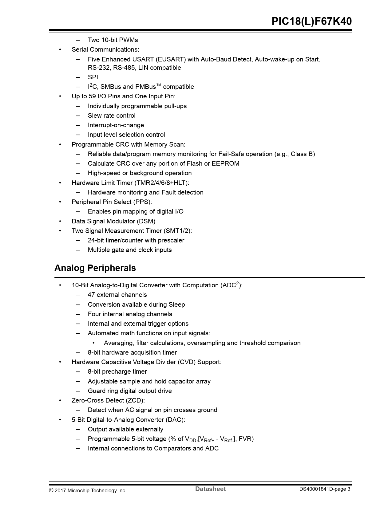 PIC18(L)F67K40. Analog Peripherals. Datasheet