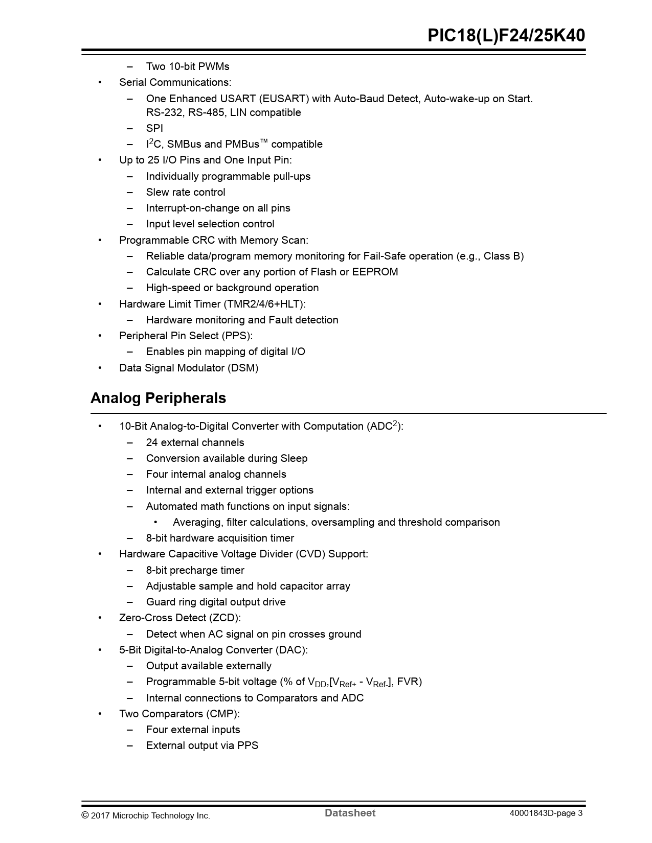 PIC18(L)F24/25K40. Analog Peripherals. Datasheet