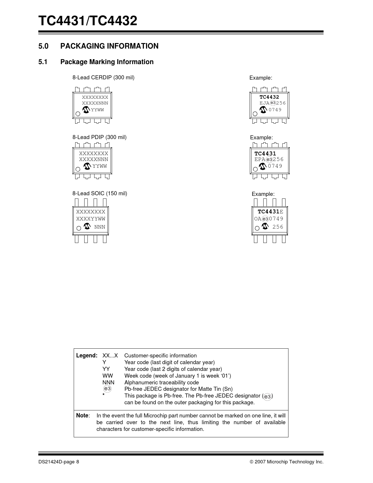 XXXXXNNN EPA^^256 e3 YYWW 0749 8-Lead SOIC (150 mil) Example: XXXXXXXX