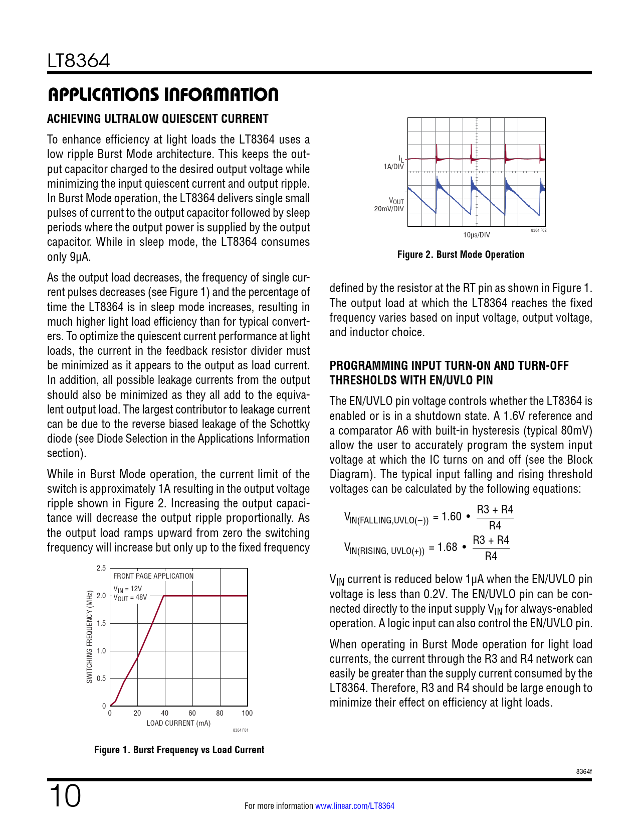 APPLICATIONS INFORMATION. ACHIEVING ULTRALOW QUIESCENT CURRENT. Figure 2. Burst Mode Operation