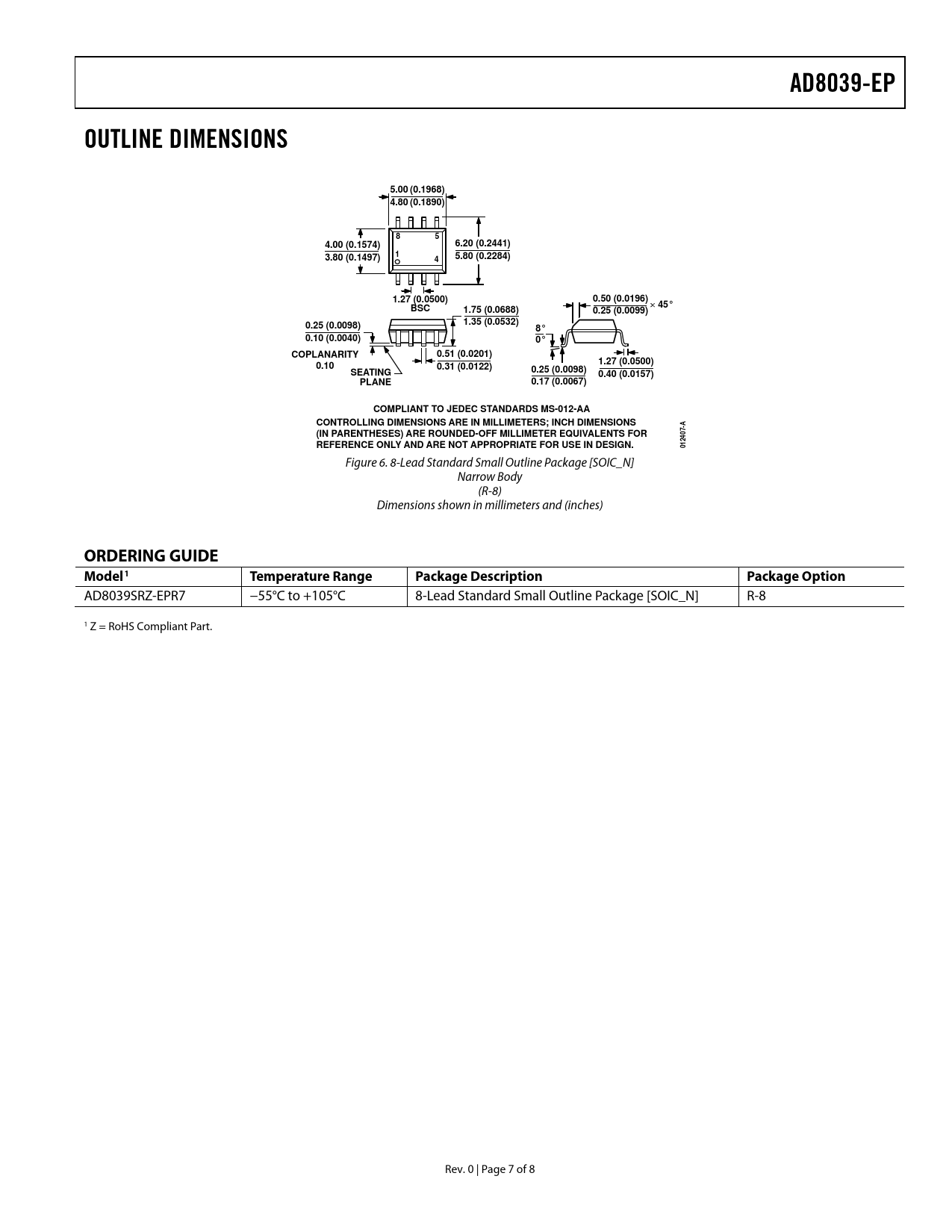 AD8039-EP. OUTLINE DIMENSIONS. 5.00 (0.1968) 4.80 (0.1890). 4.00 (0.1574). 6.20 (0.2441). 3.80 (0.1497). 5.80 (0.2284). 1.27 (0.0500)